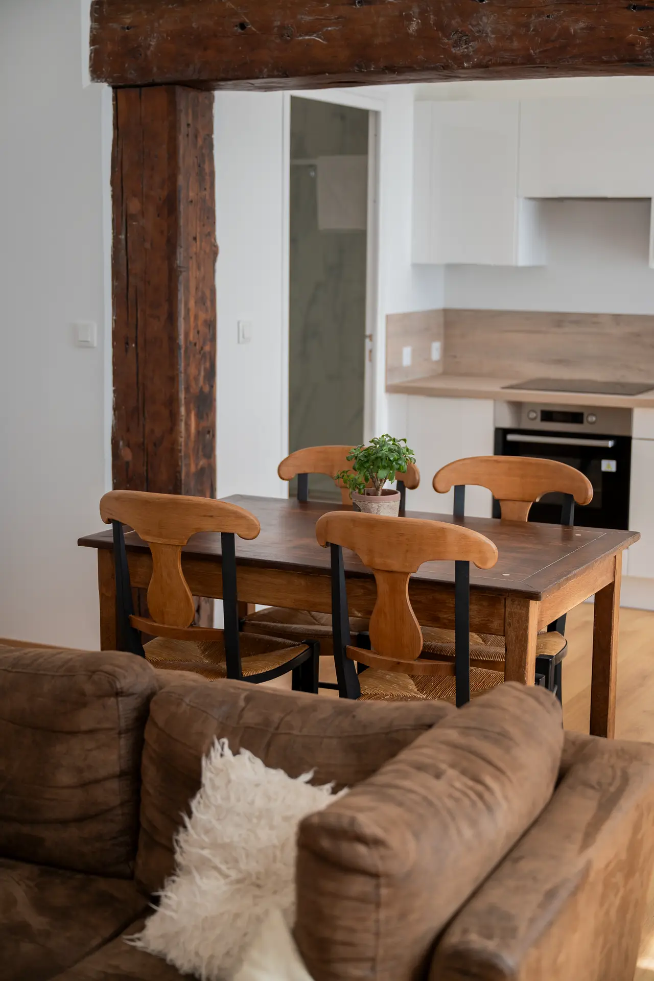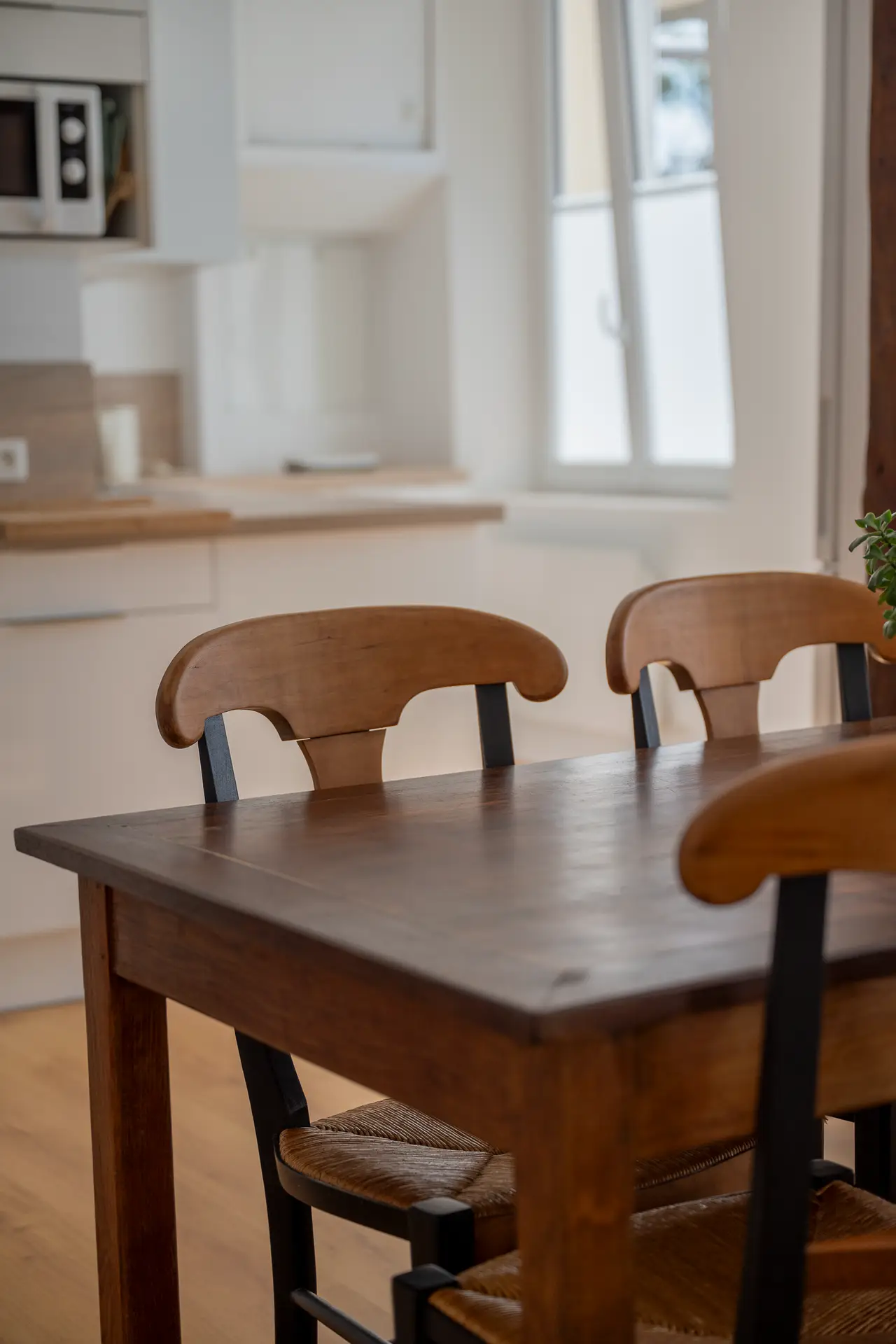 Avec ses 90 m² baignés de lumière, le Gîte Daniel peut accueillir jusqu’à 6 voyageurs dans un confort optimal. L’espace de vie se compose de 3 chambres équipées de lits doubles 140×190 avec linge fourni et bureaux, idéales pour se reposer ou travailler sereinement. La cuisine entièrement équipée permet de préparer vos repas comme à la maison, tandis que le salon convivial invite à se détendre après une journée de découverte ou de travail.
