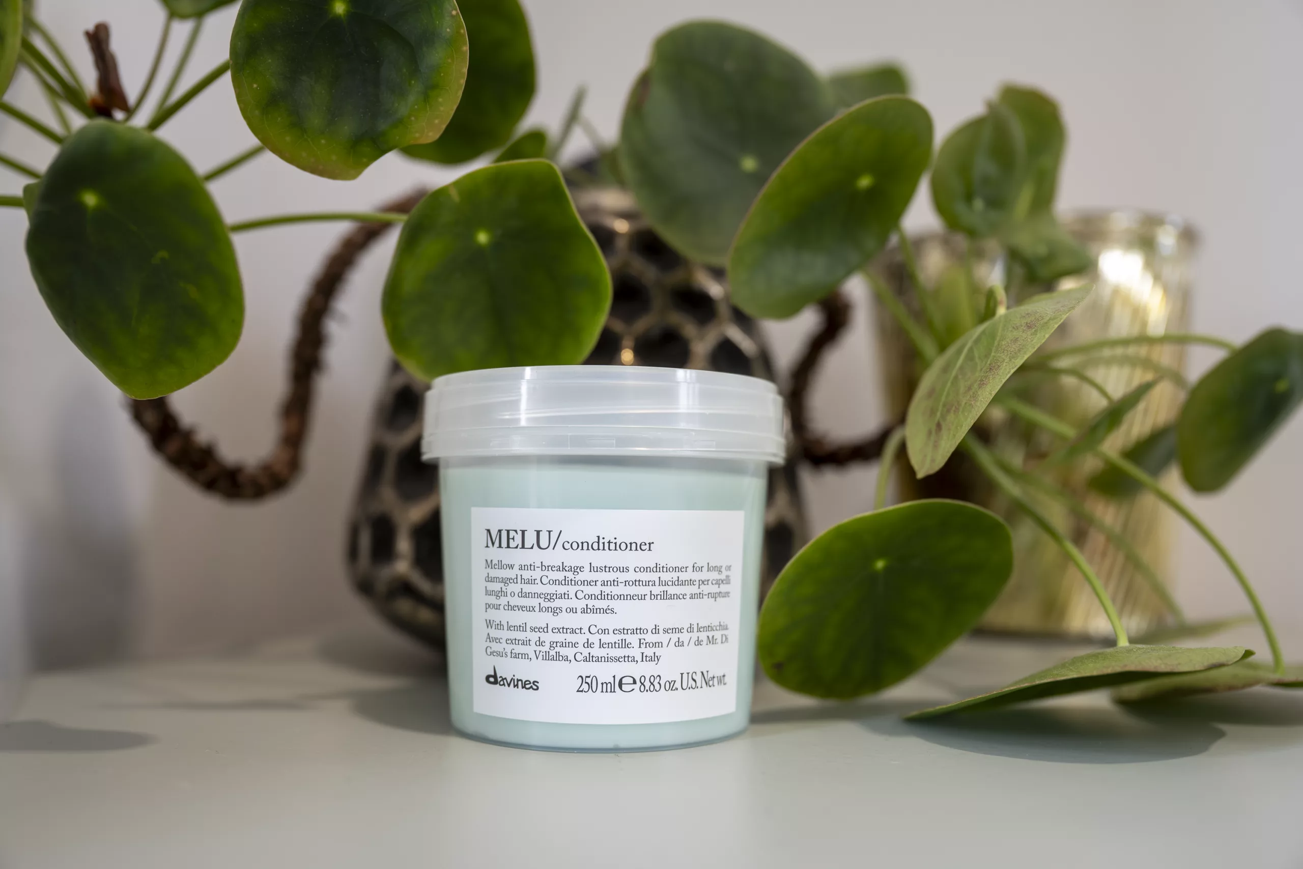 Le Conditioner MELU de Davines, en format 250 ml, est un soin professionnel pensé pour les cheveux qui subissent chaleur, colorations ou tension sur les longueurs. Sa texture légère mais riche démêle efficacement tout en pénétrant la fibre pour nourrir les pointes sèches et limiter la casse.